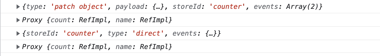 첫번째는 store의 $patch 메소드를 사용한거고, 두번째, 네번째 줄은 state의 값이다.