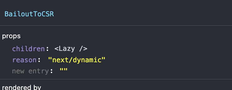 reason을 보면 이유도 같이 알 수 있습니다. 위 스크린샷에서는 next/dynamic으로 인한 Bailout이 발생했네요.